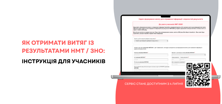 Учасники минулих років НМТ / ЗНО можуть скористатися цією опцією вже зараз, проте для учасників НМТ 2025 року вона стане доступною після передання УЦОЯО результатів основних сесій НМТ до Єдиної державної бази з питань освіти (ЄДЕБО) — з 4 липня. Витяг з відомостей результатів НМТ за запитом буде виготовлено безоплатно у строк до п’яти робочих днів відповідно до Закону України «Про звернення громадян».